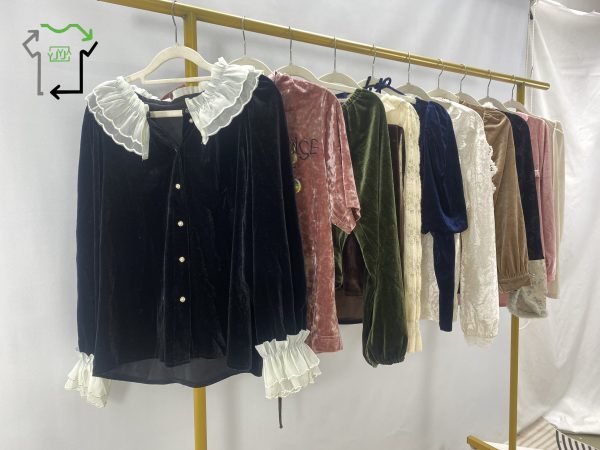 Wholesaler Long/Short Sleeve Top Used Velvet Blouse for Women with Temperament Used Clothes
